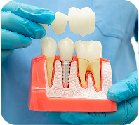 A bridge fills gaps by crowning adjacent teeth and adding a false tooth between them. This prevents shifting, improves function, and protects your smile.